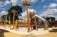 The central building houses a large play- room, kitchen, toilets, showers, an office and two storerooms.