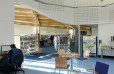 The building has underfloor heating which further assists in creating a flexible open space. The sloping nature of the site has been used to provide a loading dock for mobile library vehicles.